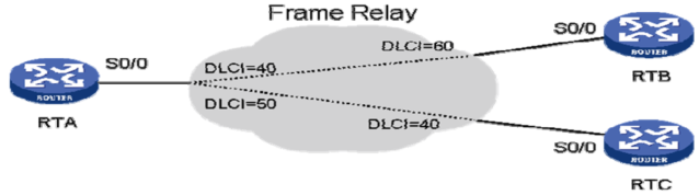 客户的网络连接如图所示。其中RTA、RTB、RTC 的IP 地址分别为2.2.2.1/24、2.2.2.2/24、2.2.2.3/24,要实现RTA 与RTB、RTC 的互通,在RTA 上配置如下哪些帧中继MAP是正确的( )。